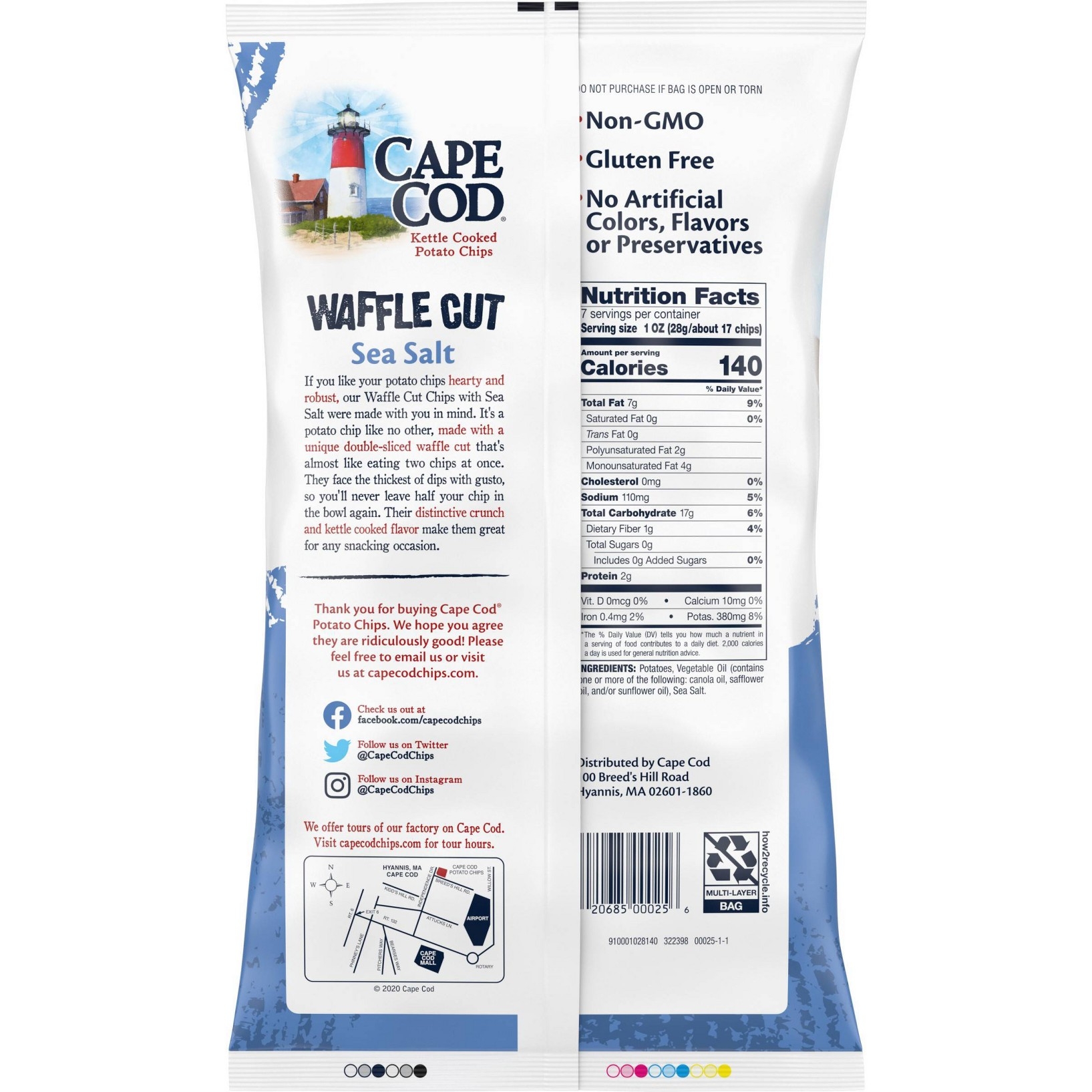u0026bull;QUALITY INGREDIENTS: Choice potatoes sliced in a wavy cut, kettle cooked, and seasoned with sea saltu003cbru003eu0026bull;RIDGED KETTLE COOKED CHIPS: The flavor of our original Cape Cod chips, with a wavy cut for extra crunchu003cbru003eu0026bull;GREAT WITH DIPS: Crunchy, hearty texture is perfect for dippingu003cbru003eu0026bull;GLUTEN FREE SNACK: Non-GMO Project Verified; No artificial preservatives, colors or flavorsu003cbru003eu0026bull;A CROWD FAVORITE: Large 7.5 ounce bag is perfect for parties, picnics, BBQs, or just snacking at home with family