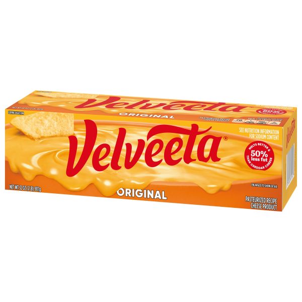 Velveeta Original Loaf melts faster than cheddar cheese for a smooth, gooey addition to any meal. The Velveeta taste you know and love is packed in this soft pasteurized recipe cheese product block that you can slice and melt whenever your family craves a touch of cheesy goodness. Plus, this original cheese loaf has 50% less fat than cheddar cheese so you can enjoy even more cheesy, delicious meals. When melted, the soft consistency transforms into gooey cheese sauce, making it perfect for creamy nacho cheese or your favorite casserole. You can also elevate your favorite vegetables, make easy homemade mac and cheese, or add Velveeta to classic cheese dip sauce.