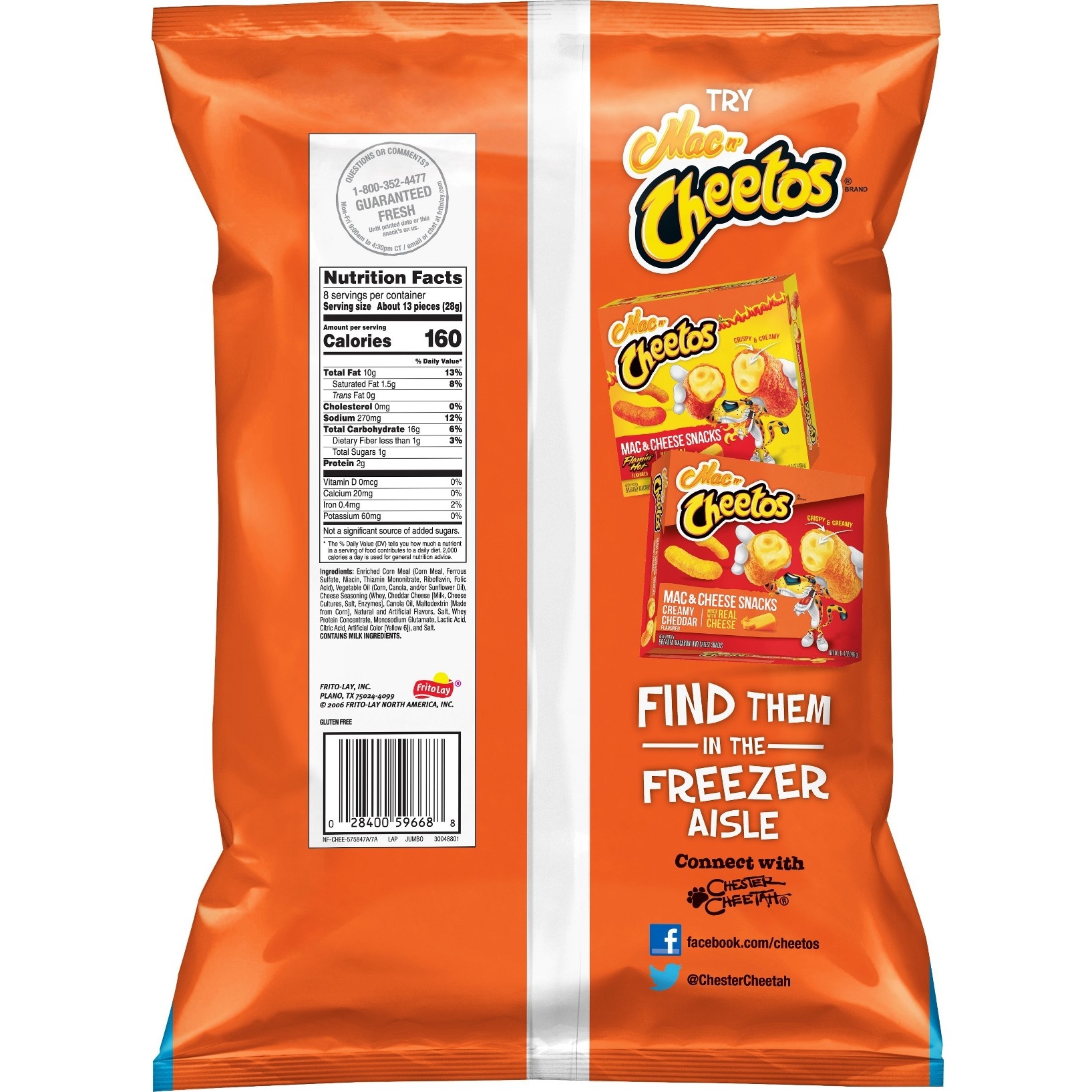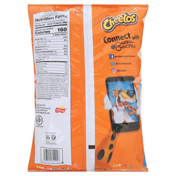 u0026bull;Bring a cheesy, delicious crunch to snack time with a bag of CHEETOS Cheese-Flavored Snacksu003cbru003eu0026bull;Made with real cheese for maximum flavoru003cbru003eu0026bull;CHEETOS snacks are the much-loved cheesy treats that are fun for everyoneu003cbru003eu0026bull;Wherever the CHEETOS brand and CHESTER CHEETAH go, cheesy smiles are sure to follow