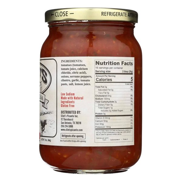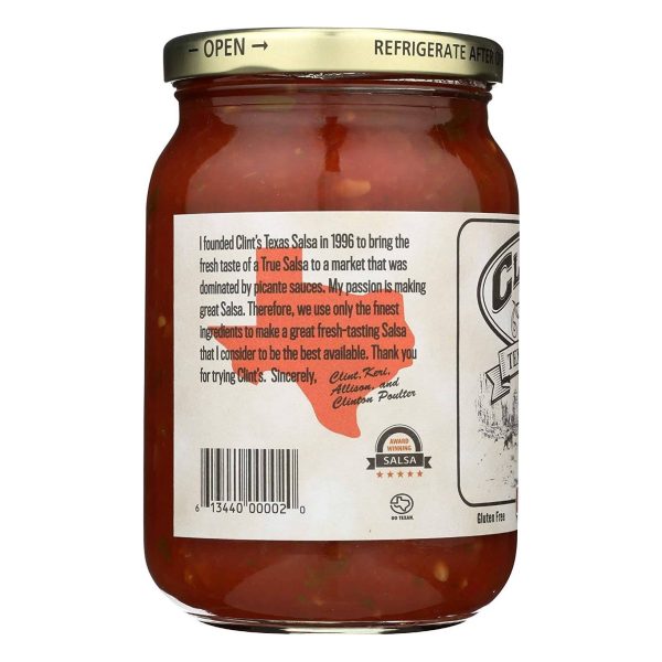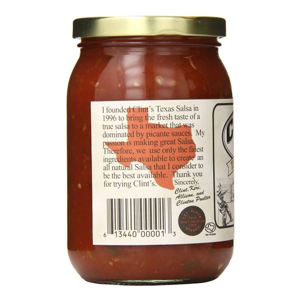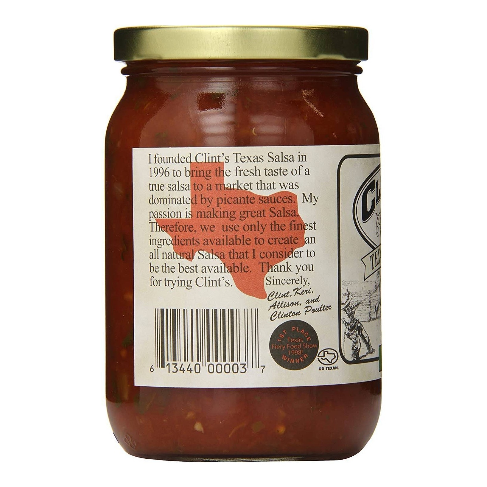 u0026bull;Clint’s Texas Salsa was founded in 1996 to bring the fresh taste of a true salsa to a marketu003cbru003eu0026bull;Gluten freeu003cbru003eu0026bull;Low sodiumu003cbru003eu0026bull;Add a basket of chips and enjoy
