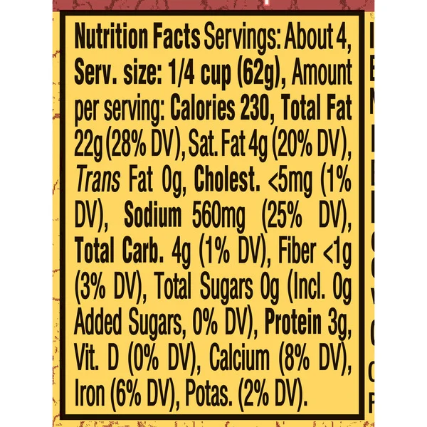 u0026bull;Cool and creamy flavoru003cbru003eu0026bull;0 g trans fat per servingu003cbru003eu0026bull;0 mg cholesterol per servingu003cbru003eu0026bull;Only 2 g of carbs per servingu003cbru003eu0026bull;Made with wholesome skim milku003cbru003eu0026bull;Delicious with chips or vegetablesu003cbru003eu0026bull;16oz plastic tub – perfect size for everyday snacking and social gatherings