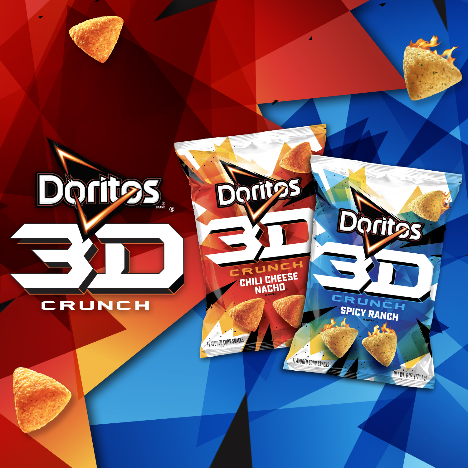 u0026bull;Includes 1 (6oz) bag of Doritos 3D Crunch Chili Cheese Nacho flavored corn snacksu003cbru003eu0026bull;Doritos 3D Crunch Chili Cheese Nacho flavored corn snacks are packed with savory chili and cheese that will have you coming back for more.u003cbru003eu0026bull;Doritos 3D Crunch is a new, unique snack with intense crunch and bold twists on fan-favorite flavors – a whole new way to experience Doritos.
