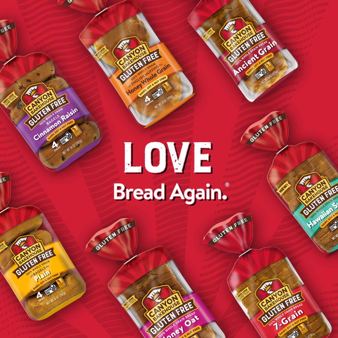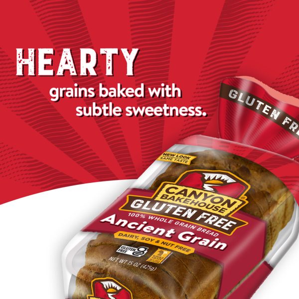 Enjoy the timeless flavor of Canyon Bakehouse? Gluten Free Ancient Grain Sandwich Bread ? baked with ancient whole grains, including sorghum, millet, amaranth and teff. This 100% whole grain bread is certified gluten free without compromising taste or quality. Plus, it’s free from allergens like dairy, nuts and soy so your family can enjoy that bakery bread taste without hesitation. Find Canyon Bakehouse Ancient Grains Bread in the fresh bread aisle and eat within five days of opening the inner bag. Baked with subtle sweetness, these multigrain bread slices make a delicious canvas for any sandwich or toast creation. Grab a whole grain bread loaf to take your family from weekday breakfast to school lunches and beyond. Your whole family will love Canyon Bakehouse gluten free products, including gluten free bagels, English muffins, hamburger buns and more. For more than 10 years, Canyon Bakehouse has raised the bar on gluten free baking, making delicious offerings the whole family will enjoy ? so everyone can Love Bread Again?.