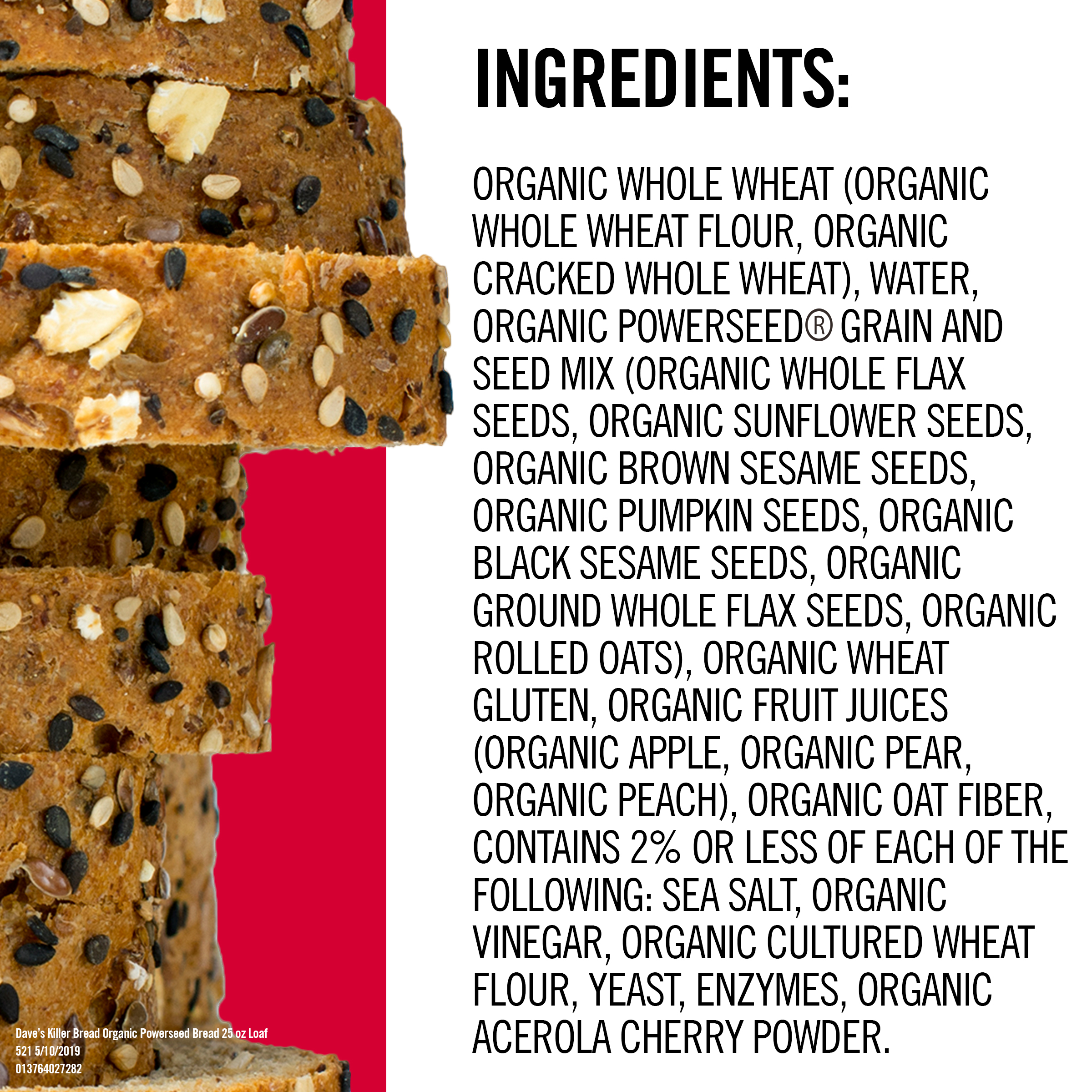 Dave’s Killer Bread Powerseed Organic Bread Loaf, 25 oz, 17 Count