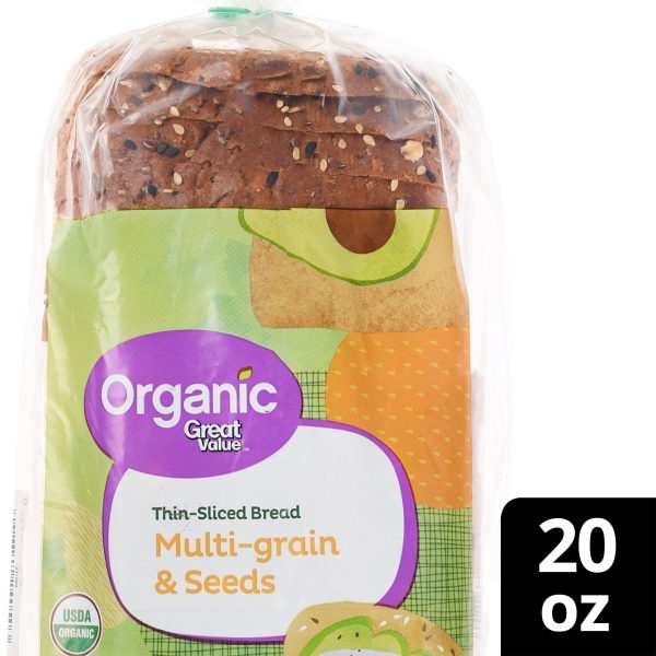Great Value Organic Multi-Grain & Seeds Thin-Sliced Bread, 20 oz, 20 Count