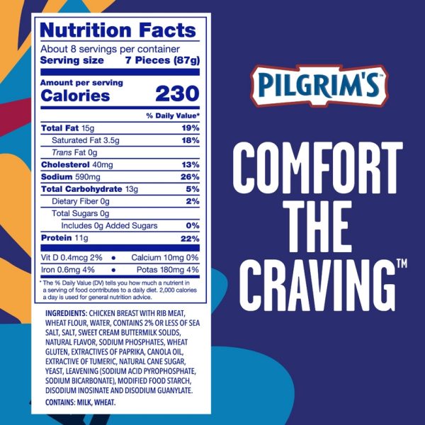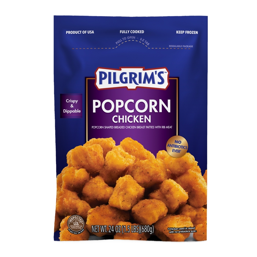 Pilgrim’s Popcorn Chicken are crispy, poppable morsels of all-white meat chicken breast that was raised with NO ANTIBIOTICS EVER. Our Popcorn Chicken is loaded with protein and ready to heat and eat straight from the freezer. Just 8 minutes in the air fryer or 11 minutes from your oven for the perfect salad topper, snack, or appetizer. Our Popcorn chicken makes mealtime fun for the whole family and has the flavor that will keep you coming back for more!