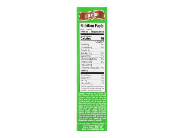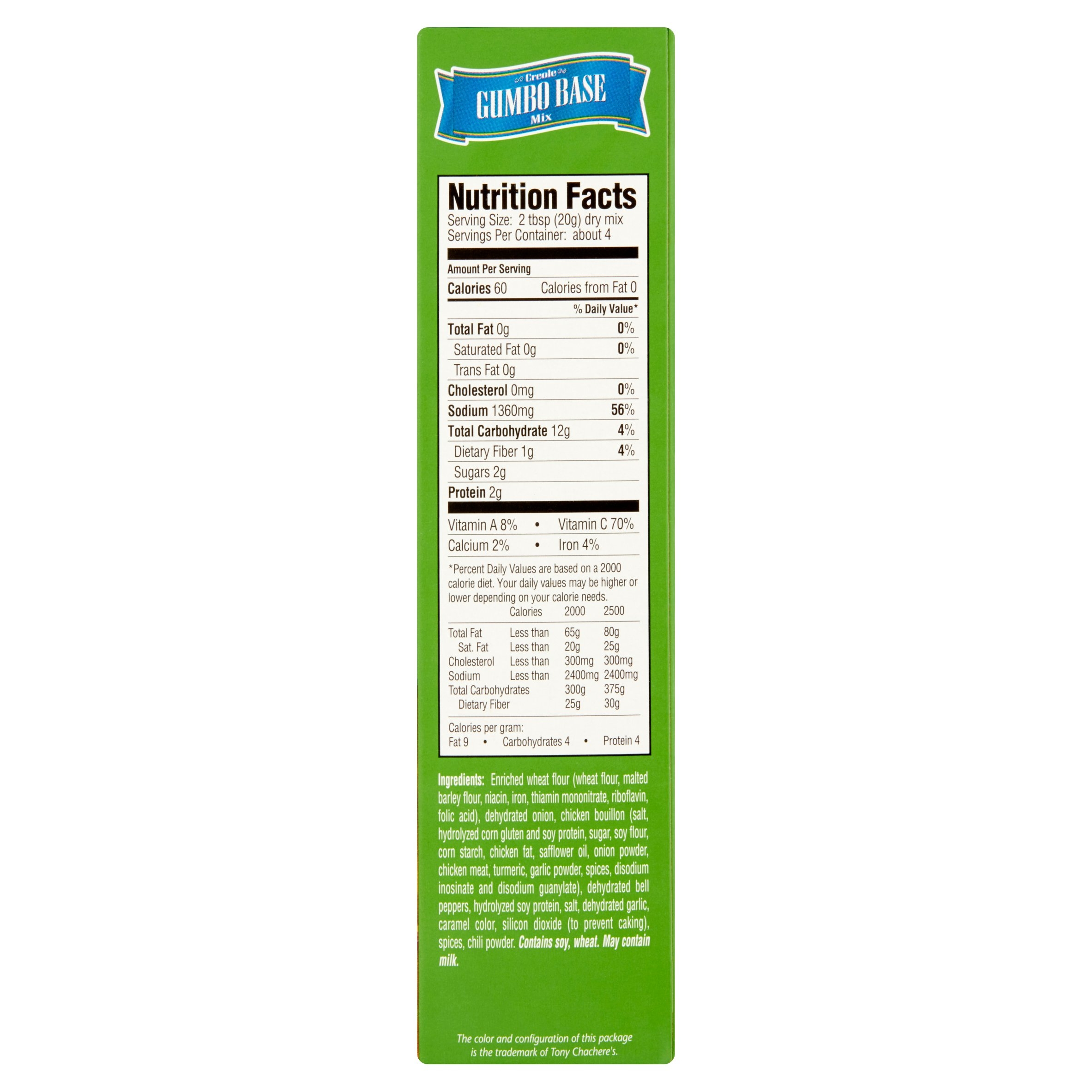 Tony Chachere?s Creole Gumbo Base Mix is the perfect blend of Creole spice flavors to start any of your favorite gumbos. All you have to do is add water and your choice of meat and in 25 minutes you?ll be feasting on this traditional Louisiana dish.