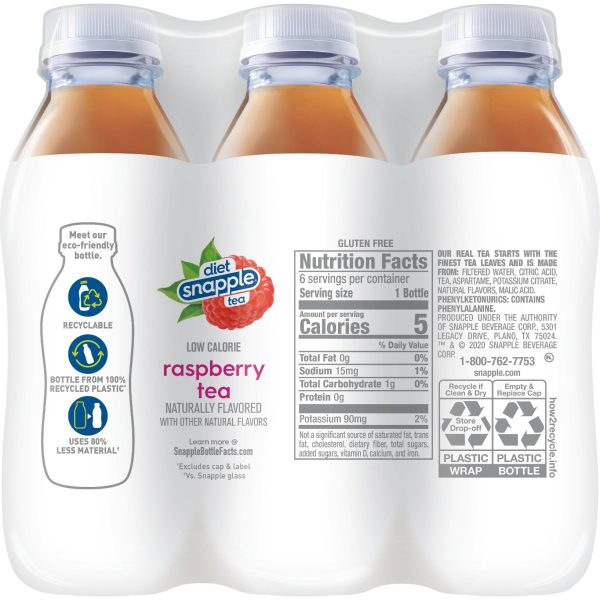u0026bull;100% RECYCLED: We’ve got a new look and a new bottle that is recyclable and made from 100% recycled plastic (excludes cap and label)u003cbru003eu0026bull;FLAVOR: Get ready Snapple Diet Raspberry Tea, a great-tasting combo tea blended with raspberry flavoru003cbru003eu0026bull;QUALITY INGREDIENTS: Our teas, juices and lemonades are made with only the highest quality ingredientsu003cbru003eu0026bull;ALL NATURAL: Snapple Diet Raspberry Tea is low in calories and contains no artificial flavorsu003cbru003eu0026bull;REAL TEA: Snapple Diet Raspberry Tea is made with green tea and black teas plus lemon flavoru003cbru003eu0026bull;TRUSTED BRAND: We started selling our apple juice to health clubs in 1973 and have since diversified our flavor portfolio into teas, fruit juices and lemonades