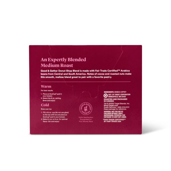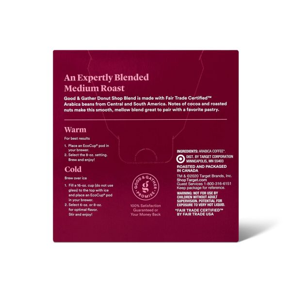 u0026bull;Donut shop blend makes a great morning cup for pairing with a favorite pastryu003cbru003eu0026bull;Medium roast with notes of cocoa and roasted nut with a smooth finishu003cbru003eu0026bull;Made from Arabica coffee that’s Fair Trade Certified™ by Fair Trade USA®u003cbru003eu0026bull;16ct single serve pods, recyclable with EcoCup® packaging