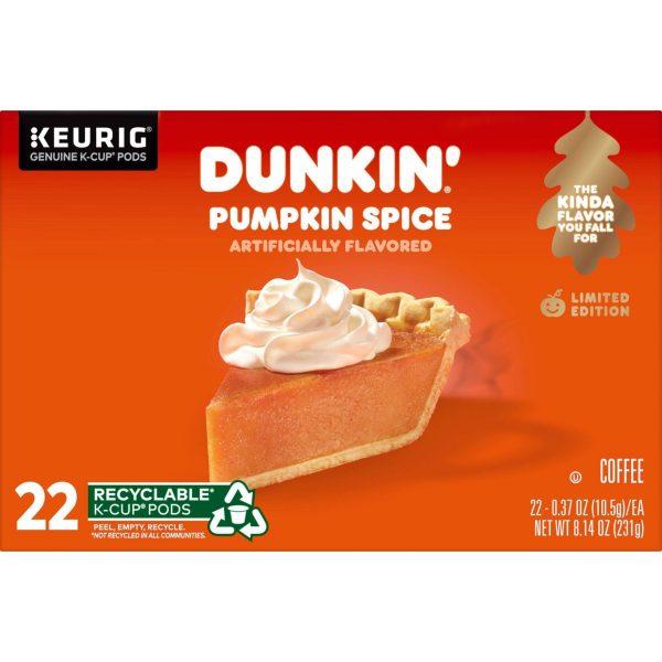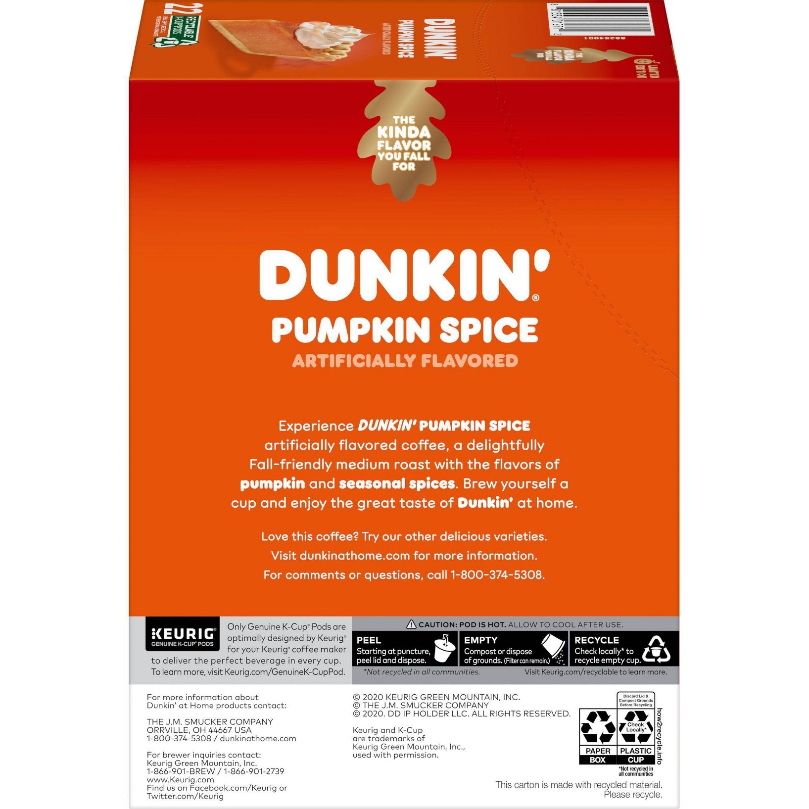 u0026bull;A smooth and flavorful medium roast coffee, specially blended and roasted to deliver the same great taste as the brewed Dunkin’ coffee available in Dunkin’ shopsu003cbru003eu0026bull;For a limited time, you may receive either box while we update our packaging. Both contain the same great Dunkin’ Coffee.u003cbru003eu0026bull;Spice up the season with fall flavors like pumpkin, nutmeg, and cinnamon. Warm up with a cup of this delicious, seasonal blend. Available for a limited timeu003cbru003eu0026bull;Enjoy in any Keurig K-Cup Brewer for an authentic Dunkin’ experience in no timeu003cbru003eu0026bull;Enjoy the great taste of Dunkin’ at home