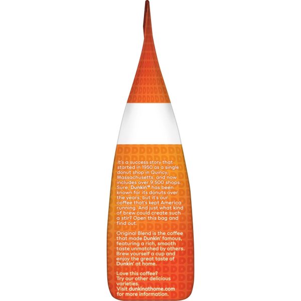 u0026bull;Medium roast coffee, specially blended and roasted to deliver the same great taste as the brewed Dunkin’ coffee available in Dunkin’ shopsu003cbru003eu0026bull;Original Blend is the coffee that made Dunkin’ famous, featuring a rich, smooth taste unmatched by othersu003cbru003eu0026bull;Pre-ground, ready to brew at home sweet homeu003cbru003eu0026bull;Enjoy the great taste of Dunkin’ at home