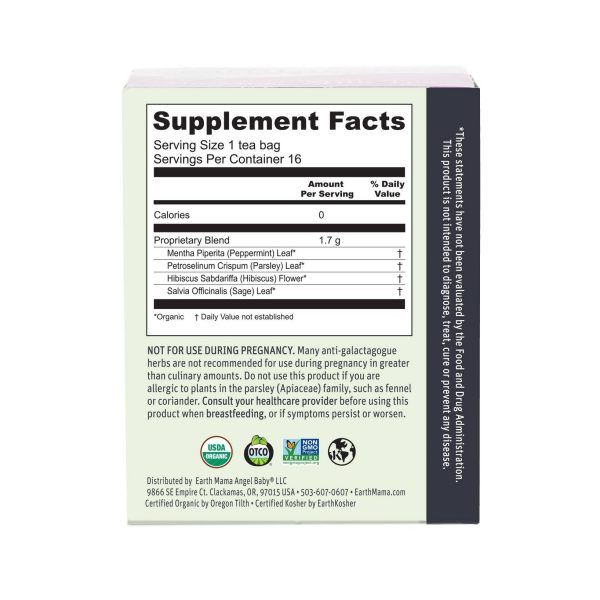 u0026bull;Refreshing hibiscus sage herbal tea to help reduce breast milk productionu003cbru003eu0026bull;A box of 16 tea bagsu003cbru003eu0026bull;USDA certified 100% Organic by Oregon Tilthu003cbru003eu0026bull;Non-GMO Project Verified and Certified Kosher by EarthKosheru003cbru003eu0026bull;NOT for use during pregnancy