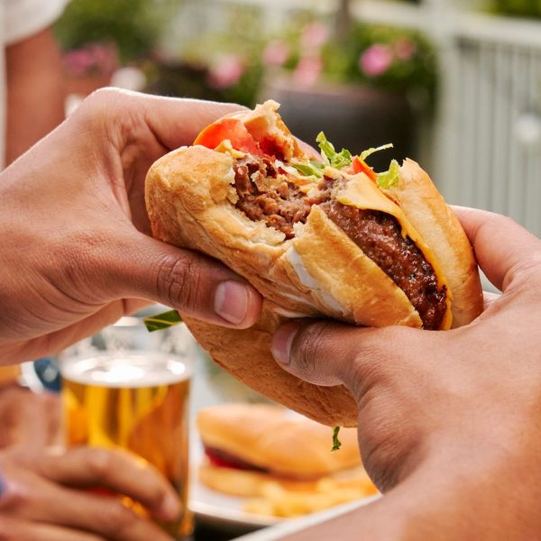 We made the first one. Then we made an even better one. Our latest and greatest Beyond Burger goes well (above and) beyond any other plant-based burger. It’s an excellent source of protein (20g per serving), has no cholesterol, and is lower in saturated fat (35% less than 80/20 beef per serving). Made from simple plant-based ingredients – like peas and brown rice – our Beyond Burger has no GMOs, soy or gluten. Each pack contains 2 plant-based patties. For your health, for your planet, for your BBQ. See nutrition panel for fat, sat fat and sodium content.