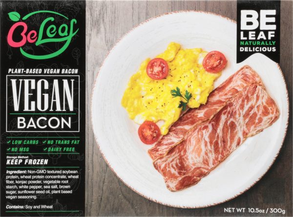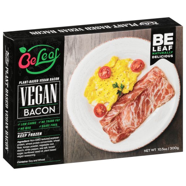 BeLeaf’s Vegan Bacon is so realistic you’ll hardly be-leaf it! Made from textured soybean protein, it has the same thin and crispy texture as real bacon.