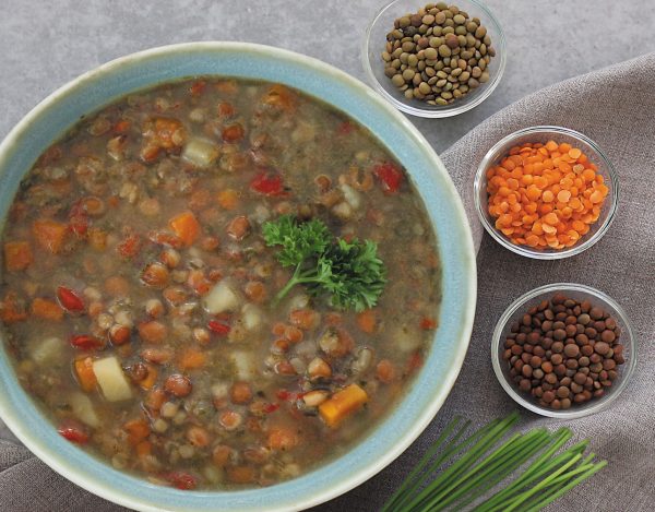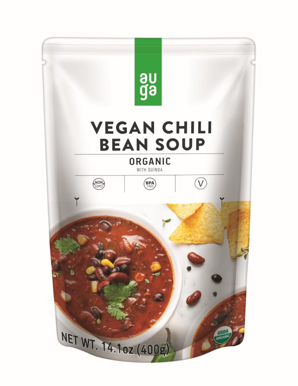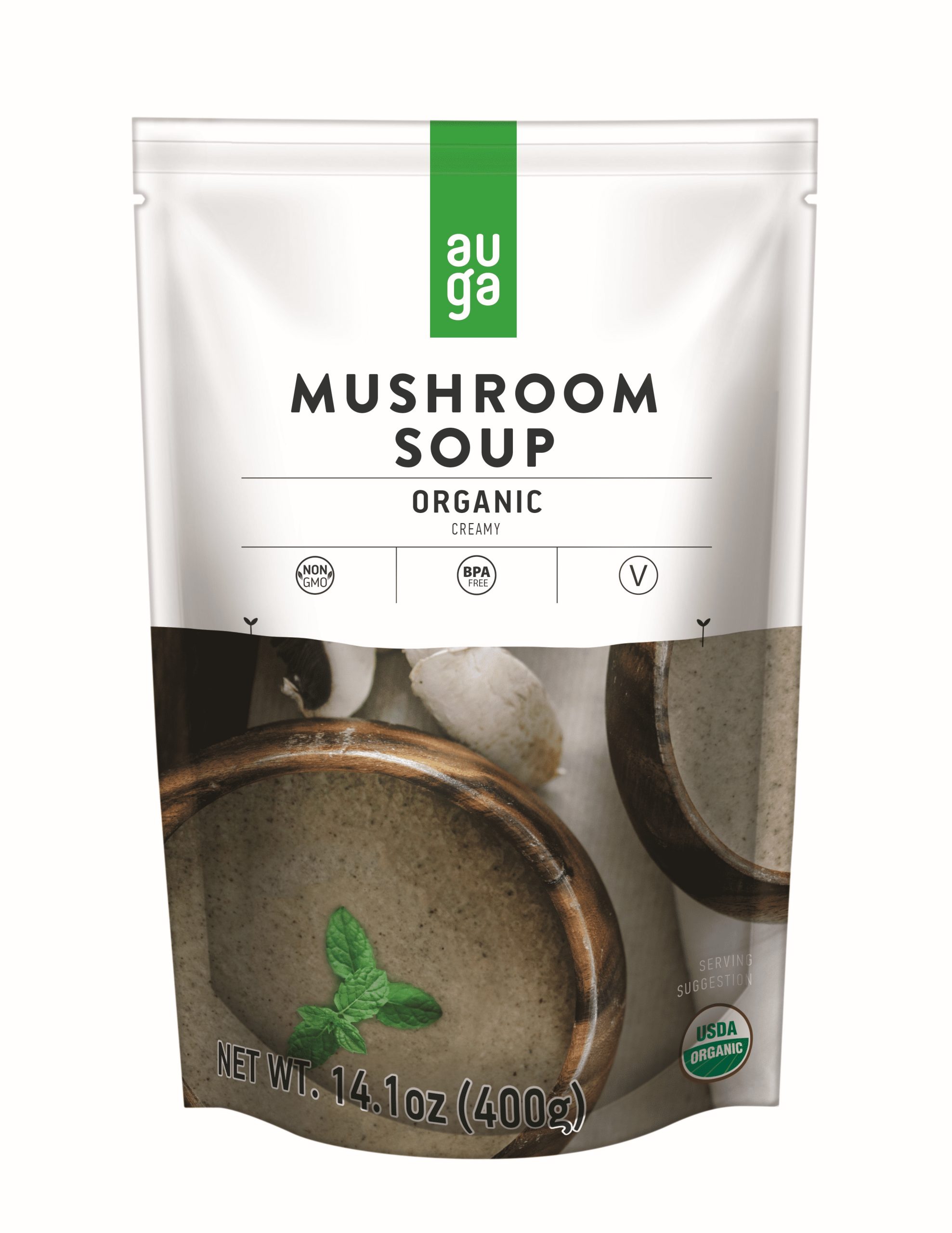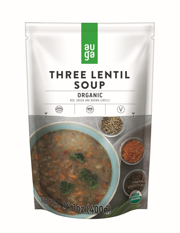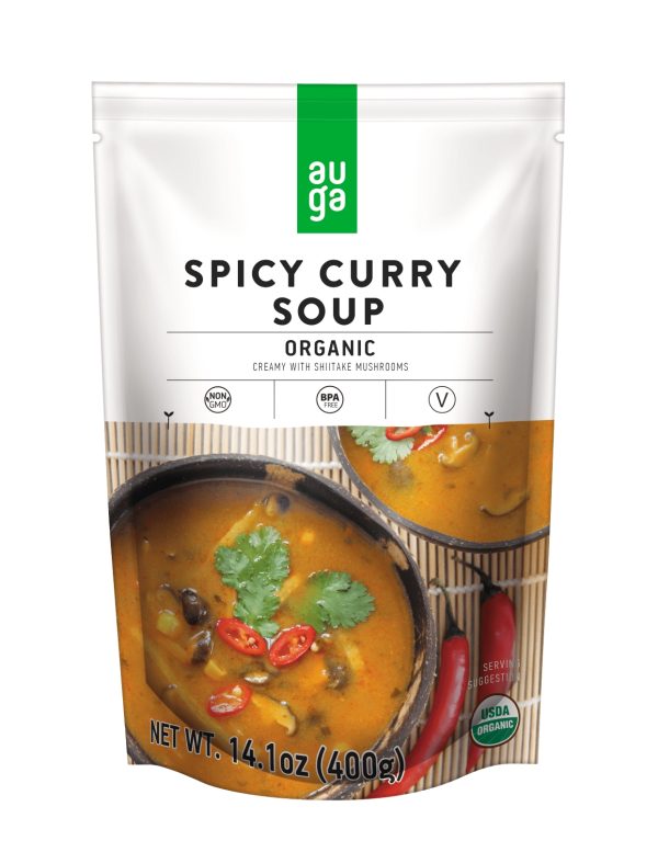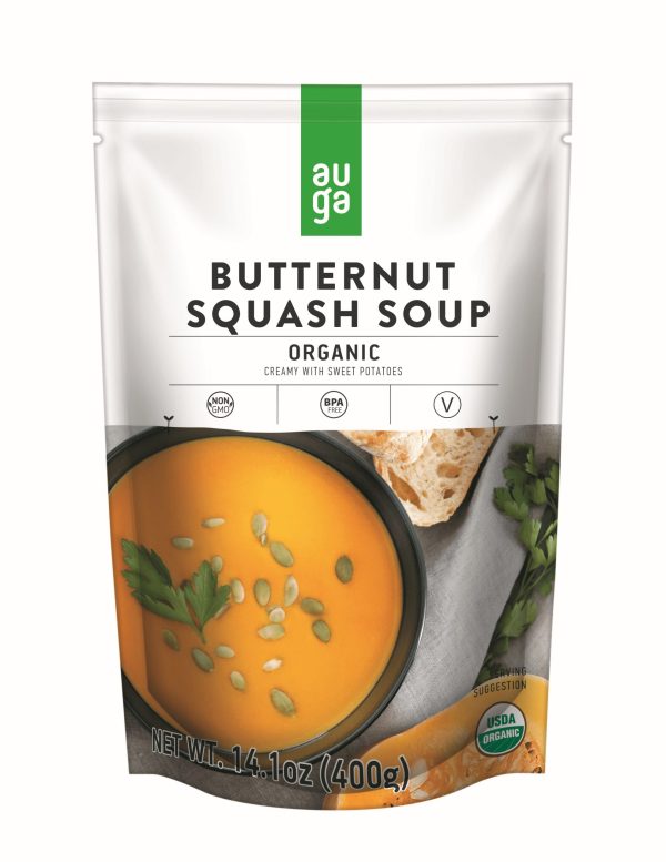 Variety Pack of AUGA Organic Soup, 6-pack, 1/ea flavor: Sweet Corn, Butternut Squash, Three Lentil, Spicy Curry, Vegan Chili Bean, Mushroom. It is free from: preservatives, gluten, dairy, and allergens (except coconut). Our eco-friendly packaging is BPA free and produces only 1/3 of the carbon emissions versus a can or glass jar. This ready-to-eat soup can be heated on the stovetop or in the microwave….you can even microwave the soup in the pouch! All AUGA products are USDA Organic, non-GMO, plant-based, and ready to eat. Many ingredients are sourced from our sustainable farms.