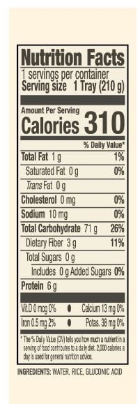 Delicious freshly cooked white sticky rice. Ready to eat in under 2 minutes. Conveniently packaged in microwave-safe individual container. Delicious as-is or good for sushi. Great for college students, singles, busy professionals, campers, and anyone who wants quick, healthy, and delicious rice! No artificial flavors, additives, or preservatives Contains (3) 7.4-oz Bowls