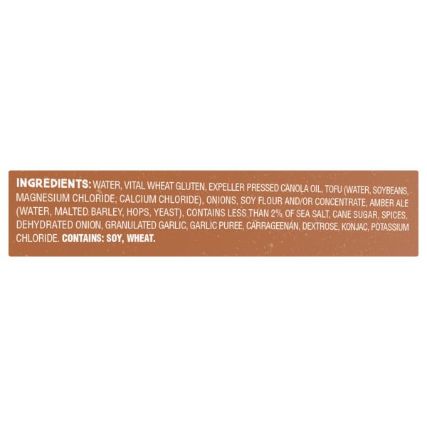 Beer Brats with Microbrewed Fullsail Ale, Vacuum Packed 14 OZ With microbrewed Full Sail ale. Family owned & independent since 1980. Outdoor grill approved. Meat free. Non GMO. Vegan. 50% less fat than typical meat bratwurst (Tofurky Beer Brats (100 g) contain 16 grams fat and 0 mg cholesterol) (Typical meat bratwurst (100 g) contain approx. 28 grams of fat and 65 mg cholesterol). If you're thinking tailgating or backyard grilling, then you're probably thinking beer brat-and do we have the sausage for you! Organic tofu, not soy isolates or powders, fresh onions and garlic, and a great-big hit of microbrewed Full Sail Amber Ale make this brat delicious and satisfying. Who says you need meat to have a party? Check out Tofurky.com for great sausage recipes! Facebook. Vegan. 100% recycled paperboard. Tofurky.com. Made in the USA. Keep refrigerated. Serving Instructions: Grill: (recommended) Lightly rub each sausage with cooking oil and place on heated grill. Cook until hot, turning occasionally. Do not overcook! Sausages only take a short time to heat up on the grill. Or, place sausages on oiled sheet of foil with diced onions, peppers, and 2 tbsp of water or beer; wrap tightly. Throw on grill for 30 minutes, turning occasionally. Microwave: Place sausage on microwaveable plate and cook on high for 30 seconds. Stovetop: Place sausage (whole or chopped) in heated, lightly oiled pan and saute briefly. Add 1 tbsp water after sausage is browned and cook covered for 15 seconds. Or, place sausage in boiling water for 90 seconds. After opening, wrap tightly in plastic bag and refrigerate. Contains: soy, wheat. 14 oz (397 g) PO Box 176 Hood River, OR 97031