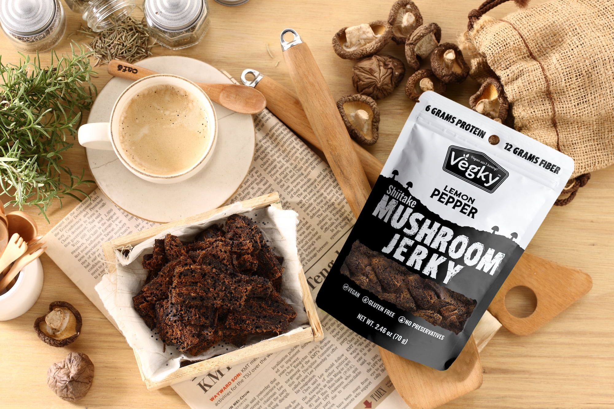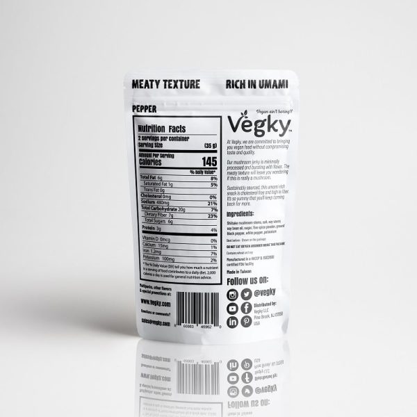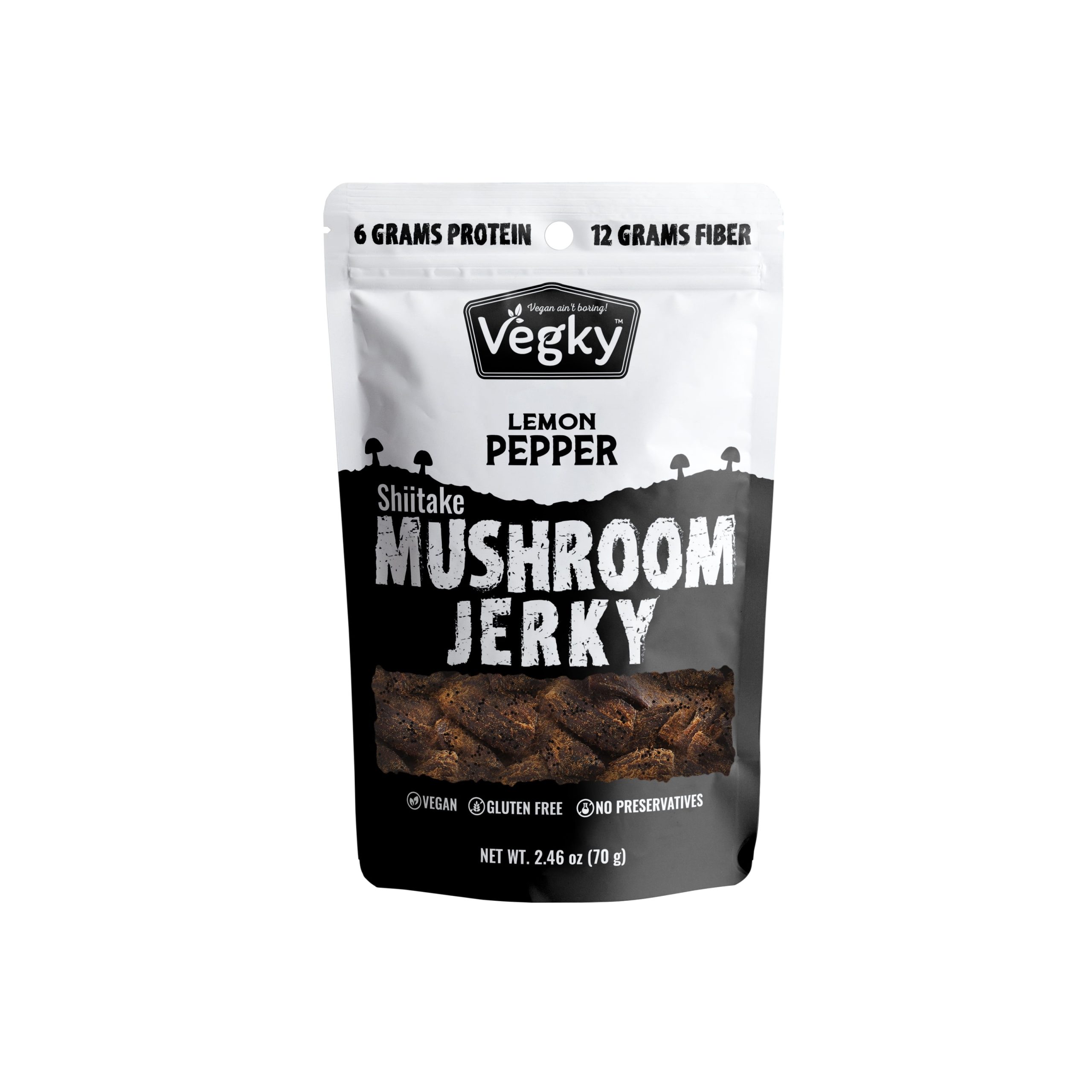 VEGKY Vegan Shiitake Mushroom Jerky PEPPER 70 Grams 2.46 oz Non-GMO Vegetarian Meatless Snack