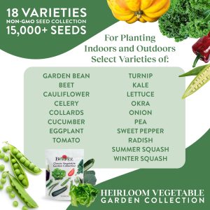 Burpee Heirloom Vegetable Seeds – 15,000+ Seeds – Beans, Beets, Cauliflower, Celery, Collards, Cucumber, Eggplant, Kale,