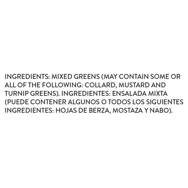 Fresh Mixed Greens are the perfect addition to your dishes. They are packed full of minerals and nutrients making them an excellent healthy option to add to your meals. They may contain some or all turnip greens, mustard greens, and collard greens. These mixed greens are a versatile ingredient that can be transformed in many ways. Sautee them with a bacon and onions for a delicious side dish or use the mix as a base for the salad with grilled chicken, tomatoes, and sliced cucumbers topped with your favorite dressing for a healthy salad. This bag of mixed greens is pre-washed for your convenience and makes it easy to add them to your meals. Elevate mealtime with Fresh Mixed Greens.