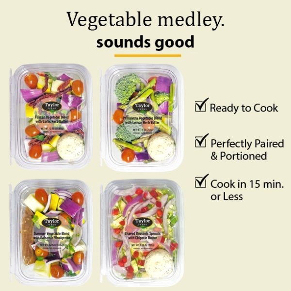Enjoy the refreshing flavor of Taylor Farms Summer Vegetable Blend with Balsamic Vinaigrette. Packed with fresh vegetables such zucchini, yellow squash, red onion, grape tomato, and parsley. This vegetable blend is ready in just 15 minutes, so you can enjoy a delicious meal or side dish that your friends and family will love. Treat yourself to the delicious taste of Taylor Farms Summer Vegetable Blend.