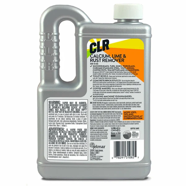 CLR Calcium, Lime and Rust Remover is a powerful formula that quickly and easily dissolves and removes tough calcium and lime deposits as well as surface rust stains from bathtubs, toilet bowls, sinks, glass, chrome, fiberglass, stainless steel, most coffee makers, humidifiers, dishwashers, washing machines and shower heads. The formula also is perfect for use on RVs and boats. CLR Calcium, Lime and Rust Remover is part of the EPA’s Safer Choice Program, recognizing the product as a safer alternative to chemicals. The fast-acting, powerful CLR formula is septic-safe and contains no phosphates. Always spot test in an inconspicuous area before beginning to clean. Available in 28 oz., 42 oz., and 128 oz. bottles.