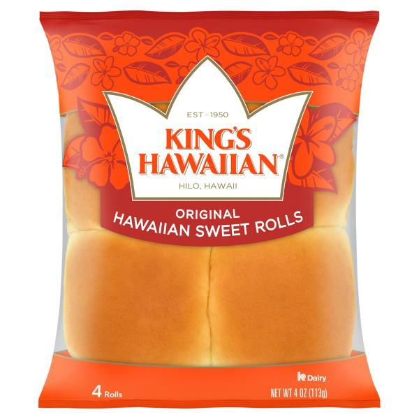 Enjoy the delicious taste of KING’S HAWAIIAN Original Hawaiian Sweet Rolls. This original Hawaiian sweet bread recipe is rolled into an authentic Hawaiian sweet dinner roll. KING’S HAWAIIAN dinner rolls have a melt-in-your mouth texture? soft and fluffy with just the right touch of sweetness that can elevate any meal. With no high fructose corn syrup, artificial dyes or trans fat, these sweet bread rolls are uniquely crowd-pleasing. KING’S HAWAIIAN Rolls are the perfect size to make great-tasting slider rolls, kid-friendly snacks and delightful desserts such as glazed donut bites. When they?re not the main dish, KING’S HAWAIIAN sweet rolls still make an impression as a complement to family dinners or when shared as a delicious heat and eat side that?s ready in a pinch. Don?t be surprised if these irresistibly delicious dinner rolls get eaten before they ever make it to the table.