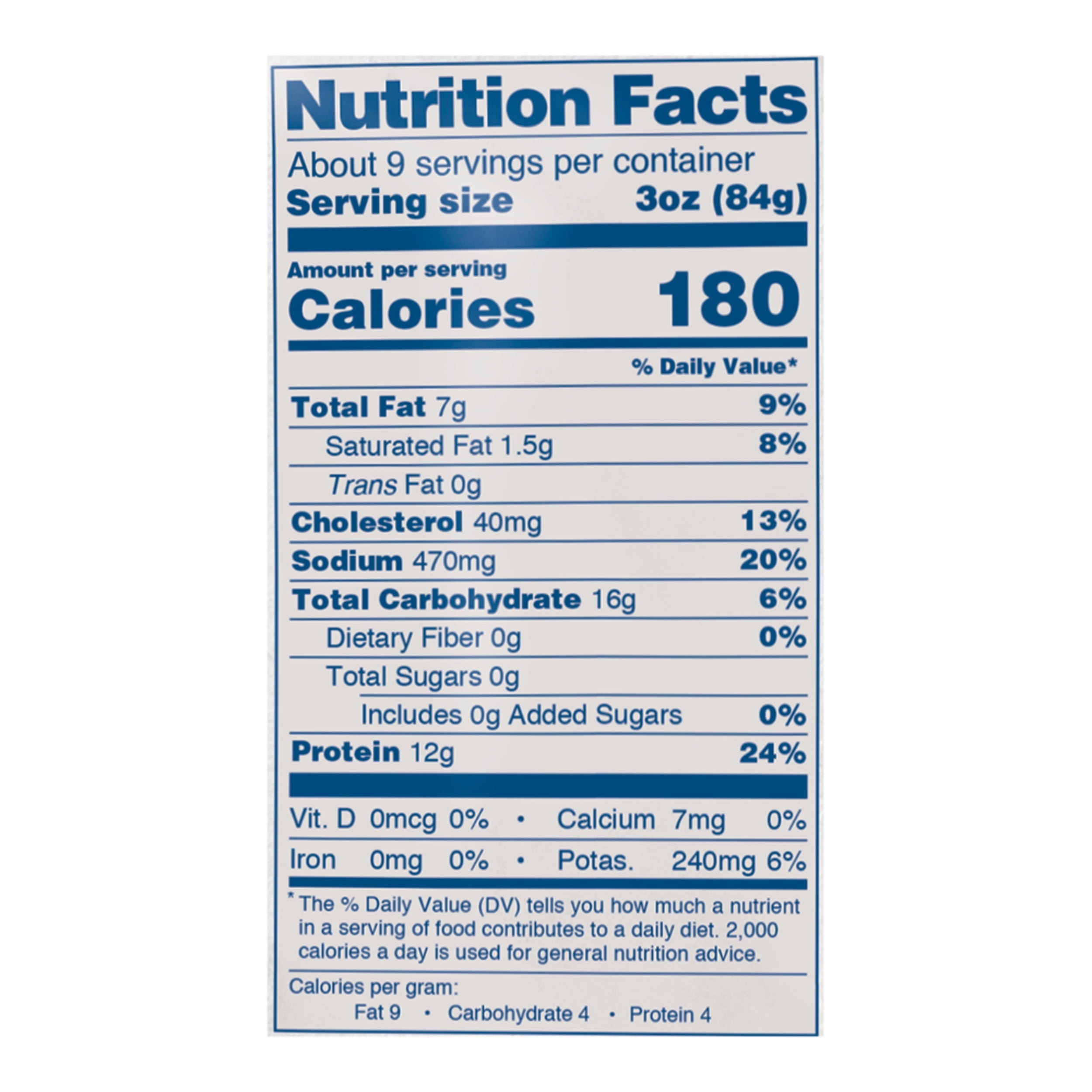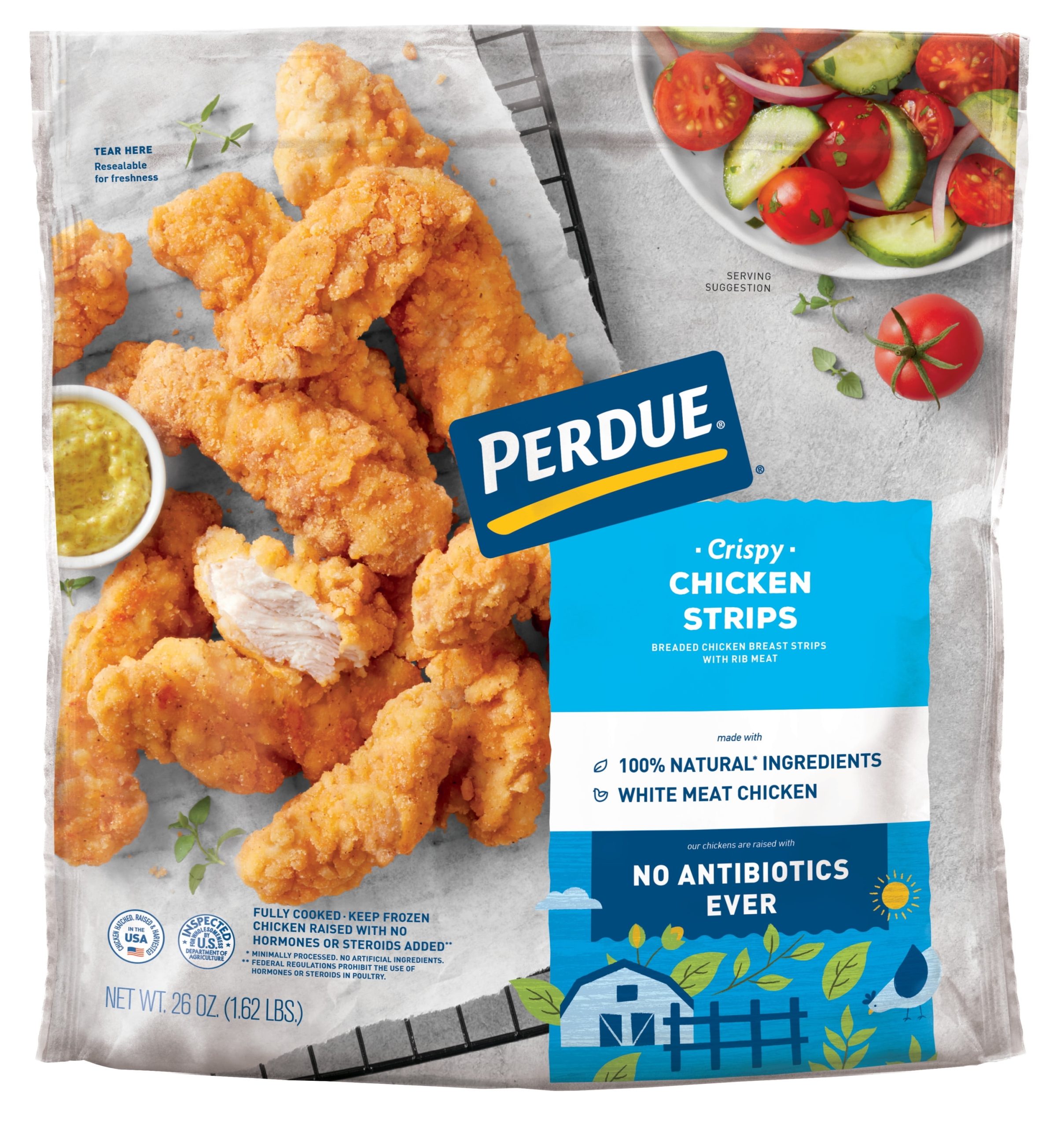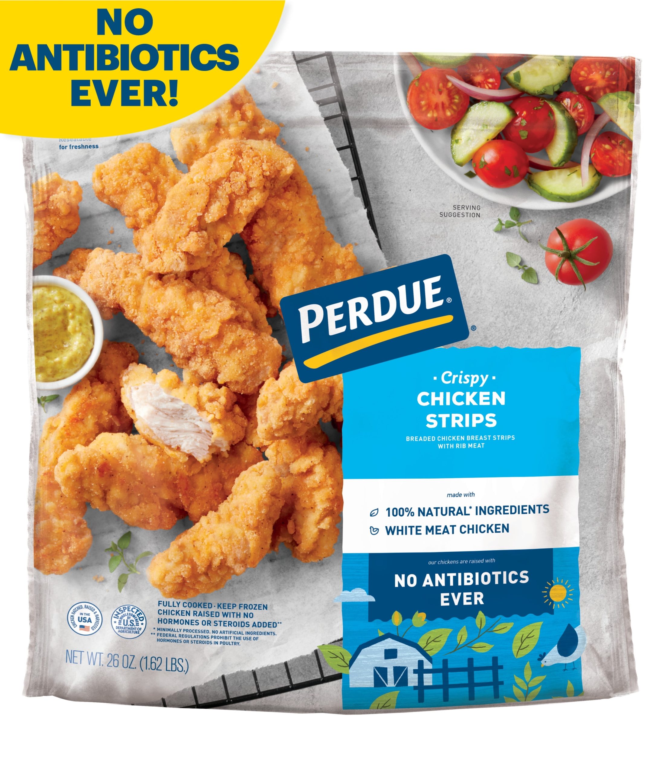 From freezer to table in minutes – PERDUE® Breaded Crispy Chicken Strips (26 ounces) are frozen and fully cooked for your convenience. Made with only white meat chicken breast strips, no fillers, and coated with a crispy, seasoned breading. They are an easy, flavorful salad topping, pasta topping, or great served on their own. Packed with 12g protein per serving (3 oz), these crispy strips make dinner easy. Simply heat what you need and store the rest for later! At PERDUE, we’re hungry for better chicken and that means paying attention to all of the details, no matter how big or small. We believe our practices – like providing healthy feed and a happy environment for our chickens – lead to better-tasting chicken. And we think you’ll agree: take one bite and taste the difference that comes from our relentless pursuit of better-tasting chicken.