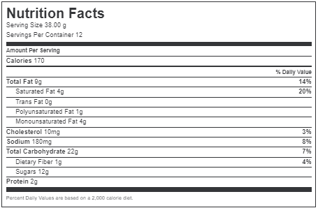 Contains: egg, wheat, milk, soy, pecans. May contain peanuts, walnuts, macadamia nuts, coconut.
